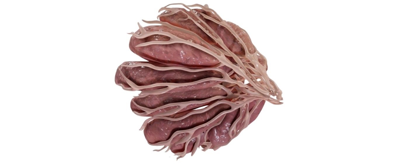 Znázorňuje vnitřní strukturu prsu s jednotlivými laloky (lobuly), které jsou tvořeny žlázovou tkání produkující mléko - z laloků pak vybíhají mlékovody, které se spojují a ústí do bradavky.